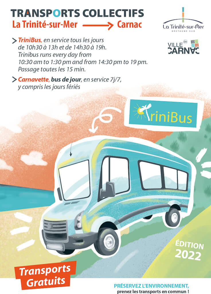 La Carnoz - Free - A night bus also runs during the summer from the Les Chandelles discotheque in Carnac-Plage to the main accommodations in Carnac and La Trinité-sur-Mer. Every 30 minutes. Thursday and Friday from 4 a.m. to 5.30 a.m. Saturday, Sunday and Monday from 4am to 6am.