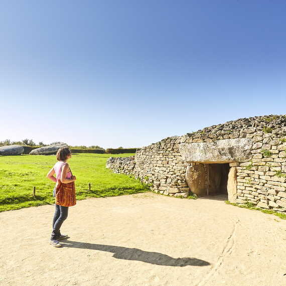 Welcome to an exceptional territory of over 1,000km² populated by thousands of stones spread over more than 550 megalithic sites in 28 communes of southern Morbihan. Carnac and its 3,000 menhirs, Locmariaquer and its great broken menhir, Erdeven and its stone giants... countless tumuli, alignments and other dolmens have marked the landscape of Quiberon Bay for 7,000 years. Find all hiking trails to discover them on foot or by bike. The illustrated discovery map of the Carnac megaliths and the Morbihan riverbanks is available free of charge from tourist offices.