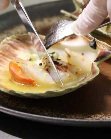 The scallop from the Bay of Quiberon differs from its Breton neighbours by its taste, its very fleshy texture and its beautiful coral. This simple and quick recipe will seduce you and will perhaps give you an idea of an appetizer for the end of the year festivities which are fast approaching.