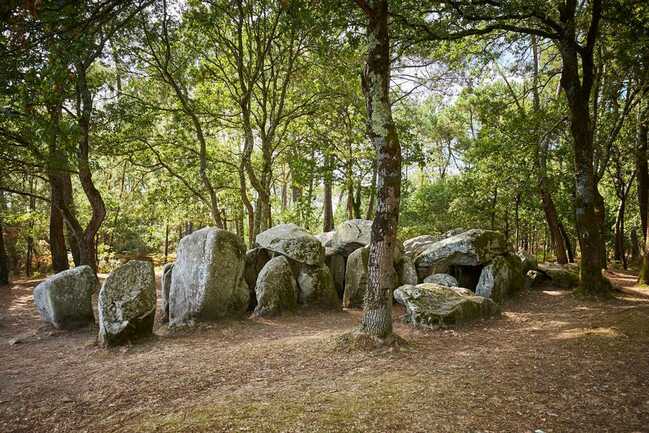 4) After Keravéon, drive through the Erdeven forest to the Varquez wood and pond. Take the time to visit the Dolmens de Mané Braz ("the big hill" in Breton), a site featuring 4 different corridor tombs (single chamber, side-cell chamber and compartmentalized chamber) certainly built at different periods of the Neolithic, the most recent being the compartmentalized chamber (-3,500 B.C.), the Dolmen de Mané Croh, or the Alignments de Coët er Blei (or "Caesar's Chair"). Please note that these megalithic sites are only accessible to pedestrians.