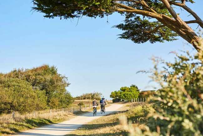 3) The route leads here to Sainte-Barbe, its small village and then to its large ocean-side beach, popular with surfers. Enjoy this stroll through the dunes, observing the remains of the historic Bégo site (almost 180 concrete structures scattered across the Plouharnel dune). This coastal defensive line fulfilled a dual mission during the Second World War: to protect Lorient roadstead and the U. Admiral Dönitz's U-boats and to prevent Allied troops from landing on the Atlantic coast. It is one of the most powerful batteries on the Atlantic Wall. Follow the signs to the D768, then turn right. At the second roundabout, head for the Sables Blancs beach, popular with kite-surfers and windsurfers. Follow the Bay of Plouharnel as far as the level crossing.