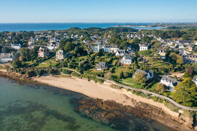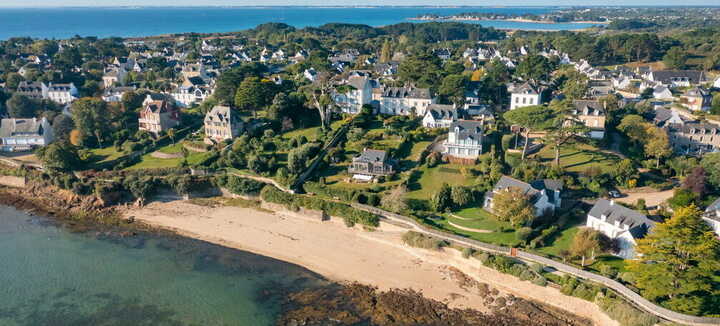 Departure point: From the quayside, walk south along the harbor. The south pier (Éric Tabarly mole) and the first pontoons and slipway were built in 1963. The Société Nautique de La Trinité is based in this part of the harbor. The fishing port has existed since the dawn of time. It is enclosed by the fishermen's breakwater, which was widened and extended in the 1950s. The central dock and the Caradec mole date from 1975, while the north dock is the most recent and was built in 1994. At the end of the harbor, take the coastal path that begins at the anchor. Continue along the convex Men Allen beach. Continue towards Bois d'Amour, skirting the large mansions dating from the early 20th century. At Kerbihan beach, join Grazu beach, then the headland.