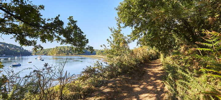 2- At the intersection, cross the road, then turn left and continue up to the entrance to the Mériadec stadium. Take the track in front of you and follow the undergrowth path along the Léran river. The Vallon du Léran is home to a number of small heritage features, including a wash-house, a calvary and several springs that bear witness to the importance of this area in earlier times.