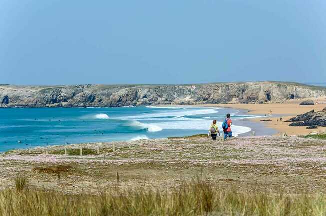 This walk presents the two coastal faces of the Quiberon peninsula: the wild coastline with its dunes on the west side, and the bay, open to the ocean, on the east side. It takes in some beautiful villages, such as Kerhostin and the fishing port of Portivy, as well as some remarkable Neolithic sites.