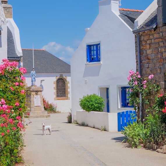 Pass through the typical Breton village and touch the colourful hollyhocks. Stroll along the granite cliffs overlooking the ocean, contemplating the fragrant mauve moorland. There are a number of shops, restaurants and cafés. It's a great place to sample local specialities, including seafood in one of the island's restaurants.