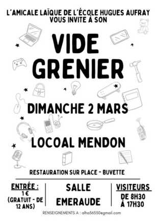 Big garage sale Salle Émeraude - Route de Locoal56550 Locoal-Mendon Card mail The Amicale laïque de l'école Hugues Aufray invites you to its garage sale, with food and refreshments on site. Salle Émeraude - Route de Locoal56550 Locoal-Mendon Itinerary Input Gratuit Spoken languages Français