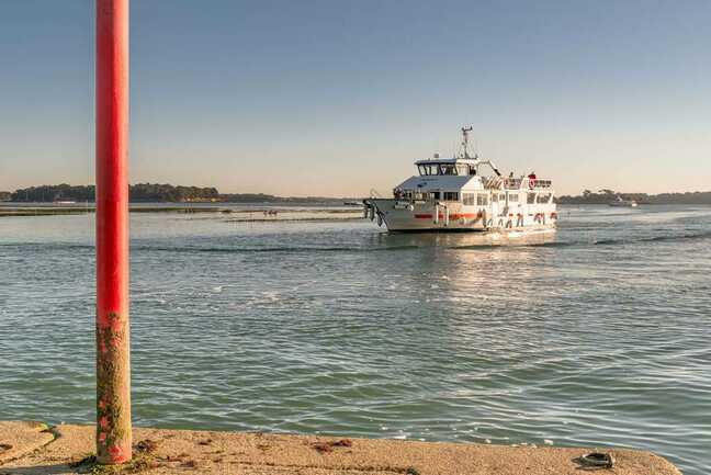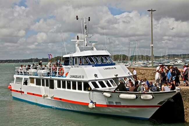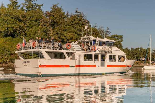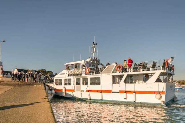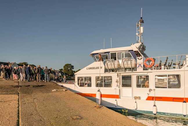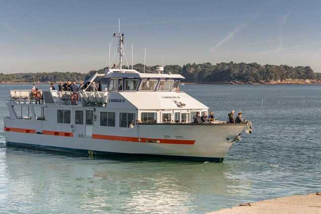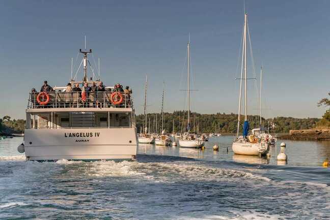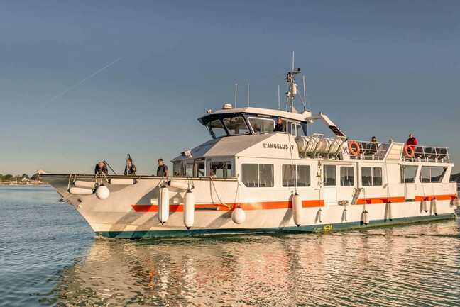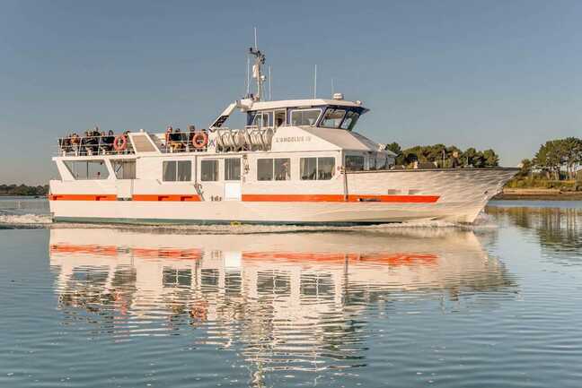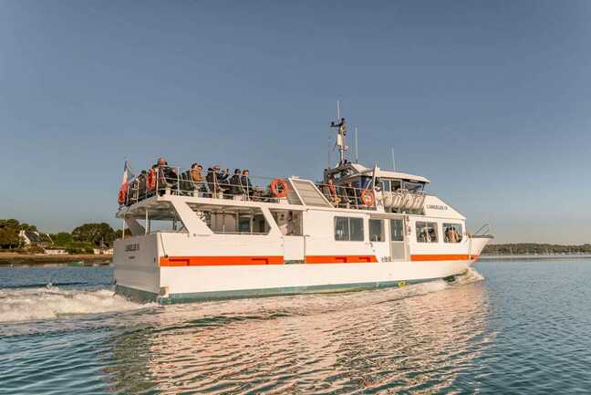 Discover the Golfe du Morbihan, the Auray River and the Ile-aux-Moines aboard the Angélus launches, with or without a stopover, every day from April to September and during the All Saints' Day vacations, departing from Locmariaquer or Port-Navalo.