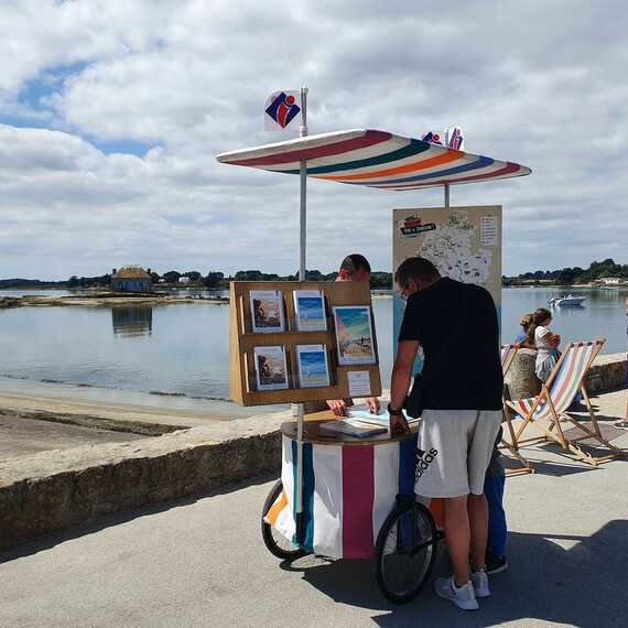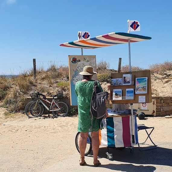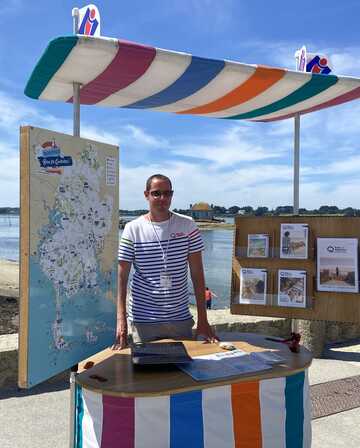 From Monday to Sunday, Typhaine and her mobile reception will be visiting various places in the region: places to visit, markets, beaches, etc. To make the most of your stay in the Bay of Quiberon, she is at your service to answer your requests for tourist information, guide you and advise you. Tourist map, practical guides, events, markets... all the documentation you need is at hand. A maritime and leisure ticketing service is also available.