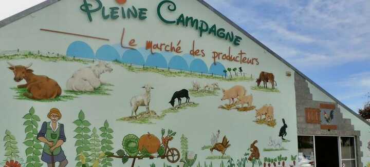 Local produce such as seasonal fruit and vegetables, dairy products, meat... Also a grocery section and crêpes and galettes made on site!