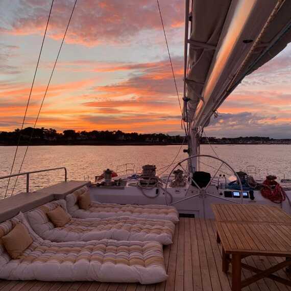 Vivez une soirée magique à bord du catamaran OCTANT avec notre croisière au coucher de soleil. Alors que le soleil descend à l'horizon, profitez de la vue spectaculaire des côtes bretonnes baignées dans une lumière dorée.