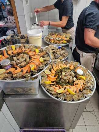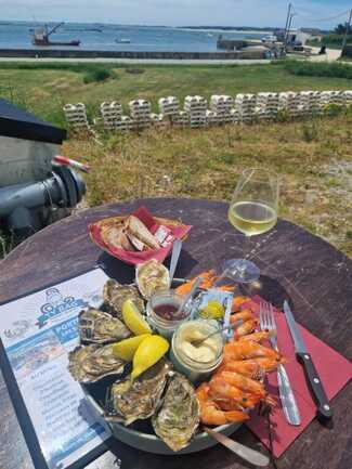 Oyster tastings in front of the beach, moules frites (from Penestin) and seafood platters in a family-run oyster farm.