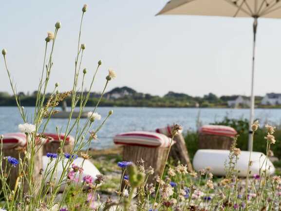 As oyster farmers, we invite you to sample our oysters, shellfish and crustaceans from our tanks, in a natural, calm, flower-filled setting.