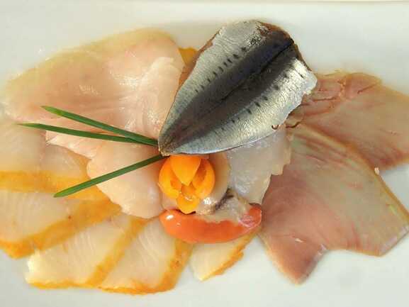 as well as various smoked fish such as trout, saithe, sardines, mackerel and scallops, depending on the season.