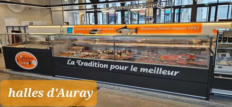 Since 1992, this family-run business has been processing Label Rouge Scottish salmon and organic Irish salmon using traditional, artisanal methods: salted with salt from La Trinité sur Mer, smoked with shavings from the Camors clog-maker, and entirely hand-smoked.