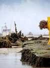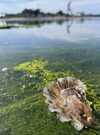 "From the sea to the plate" Ty Naod oyster farmer with his feet in the water facing Anse du Pô.