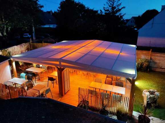 In fine weather, take advantage of our garden terrace, under a welcoming pergola, where you can sit back and enjoy our homemade galettes and crêpes. These are prepared with IGP Breton flour and local seasonal produce, in keeping with Breton tradition and terroir.