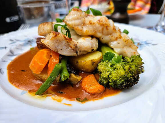 Enjoy wonderful fresh fish dishes or share a seafood platter from April to October. Oysters in low season.