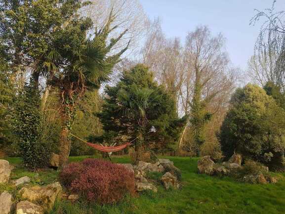 Relaxation guaranteed in an idyllic setting, between park, pond and forest, surrounded by animals: cats, dogs, alpacas, sheep, goats and ponies.