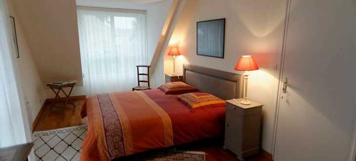 Two separate bedrooms (14m² and 22m²) for families or couples of friends, with a shared shower room and separate toilet. The bedrooms, bathroom and TV-reading area are upstairs. Breakfast available on the first floor. Home-like atmosphere.