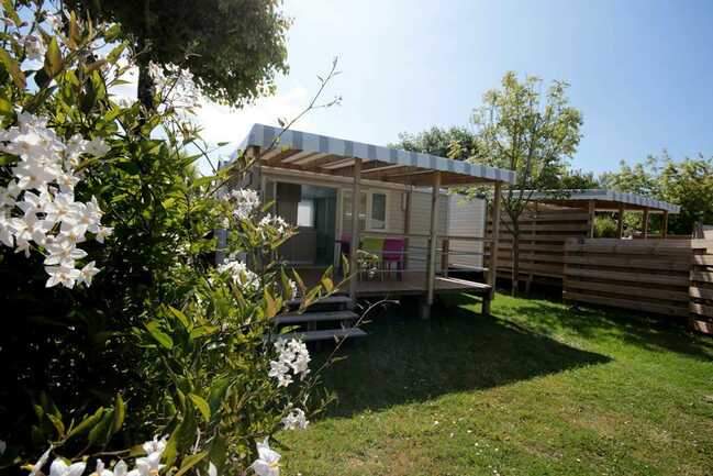 Mobile homes for rent, spacious shady pitches.