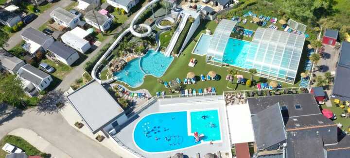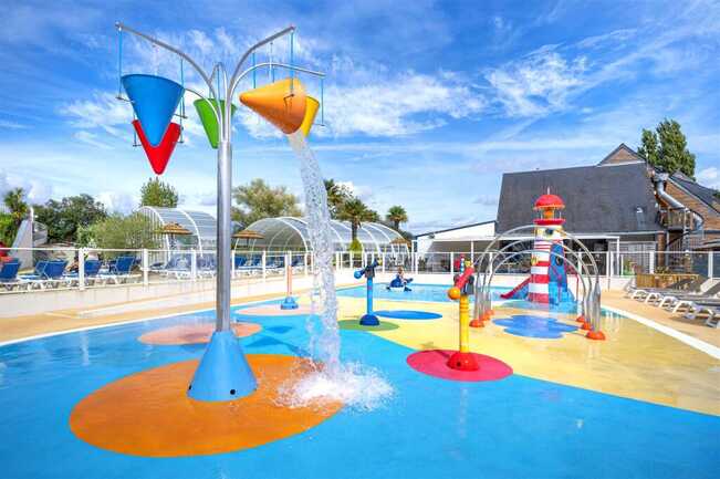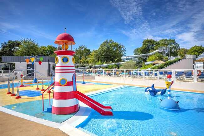 On the program: heated water park with slides, spa/sauna, inflatable games, children's playground, multisport field, pétanque, entertainment (July/August). Restaurant on site.