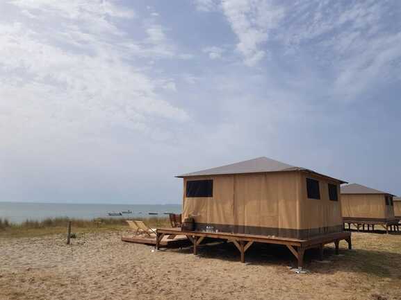 2 km of sandy beach on the bay side, 8 km of beach on the ocean side.