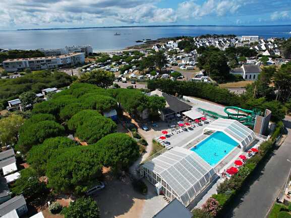 Located just 150 m from Goviro beach and 1.5 km from the town center, Flower Camping le Bois d'Amour is the ideal place to spend your vacations in Quiberon: large indoor heated swimming pool, waterslides, restaurant, grocery store, bread depot, children's playground, kids' club and summer entertainment, bike rentals, wifi.
