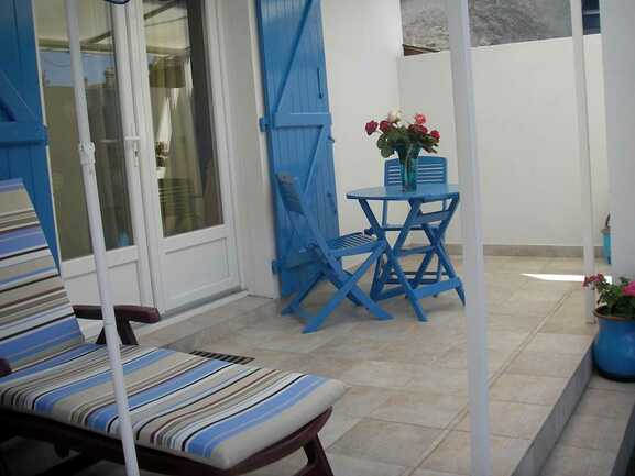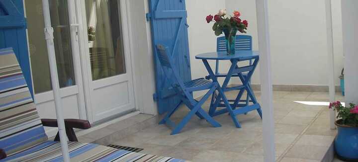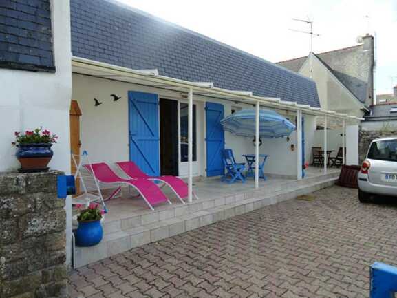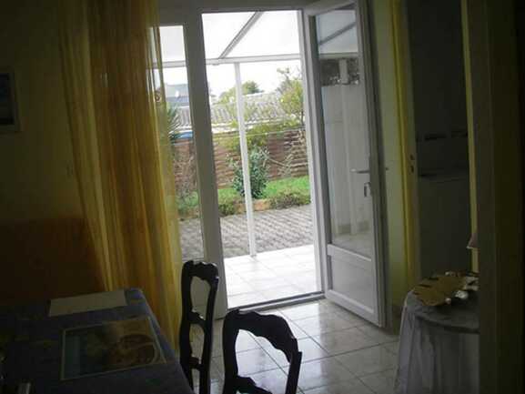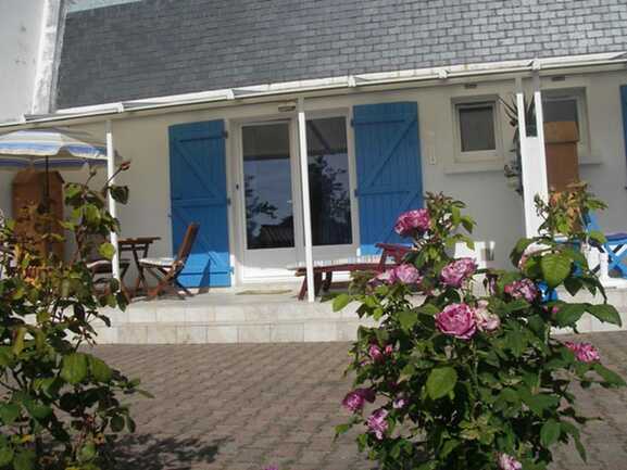 Studio 2 persons, in the town center and on the ground floor of a semi-detached house in Quiberon. Living room, equipped kitchenette, separate bedroom with double bed. Bathroom with washing machine, HIFI and TV. West-facing terrace. Parking space. Enclosed garden. Dogs welcome. Year-round rental. Linen rental available.