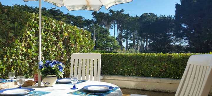 Large sunny terrace opening onto private garden. Living room with kitchenette, 1 double bed and 2 bunk beds. Bathroom with hairdryer.