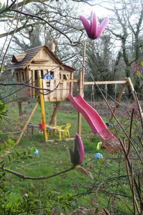 Welcoming property on an old farm with orchards, meadows and woods on 20 ha. The courtyard is laid out with flower gardens and trees.