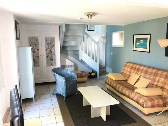 On the first floor, a fully-equipped kitchen and living room open onto a small south-facing garden (with garden furniture, barbecue and deckchairs).