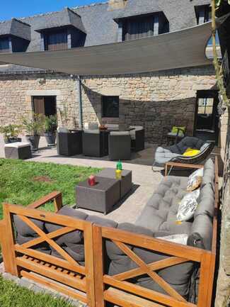 The house is located in the village of Kerpenhir, in a quiet setting off the main road, 5 minutes' walk from the beaches and 15 minutes' walk from the center. It comprises a large 50 m² living room open from the lounge to the kitchen on the ground floor, and 2 bedrooms on the first floor. Each level has its own bathroom and WC.