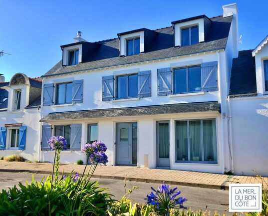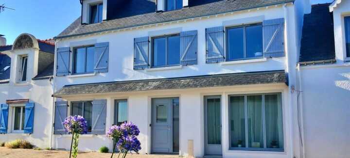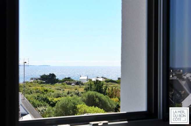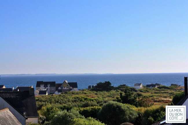Dominant sea views, facing Belle-Île-en-Mer and the Poulains lighthouse, for this superb La Chaumine house, 120 m2, 4 bedrooms, in the center of the charming fishing village of Manémeur, Quiberon, with capacity for up to 10 people and 1 baby.