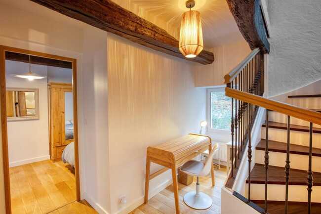 This restored 130m2 character house offers all the comfort you'll need for your vacation in Auray, located 200m from the Port de St Goustan and Auray town center, within walking distance of boat crossings on the Gulf of Morbihan, and close to golf courses and beaches. A garden with a sunny terrace lets you enjoy the peace and quiet.