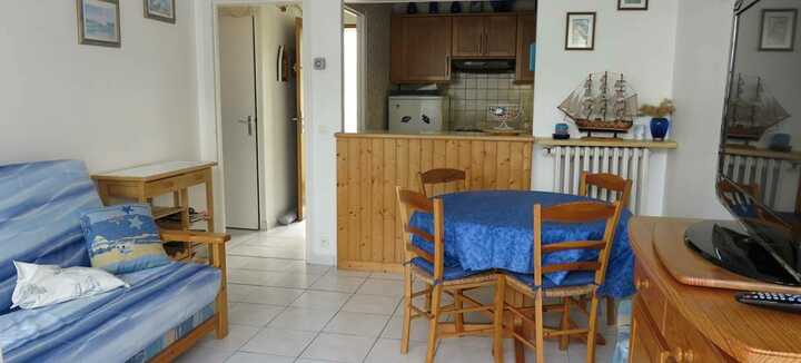 4-person apartment. Résidence La Plage, 1st floor, 4-person apartment comprising: 1 living room, 1 bedroom with 1 double bed, 1 cabin with 2 single bunk beds and 1 fully-equipped kitchen.