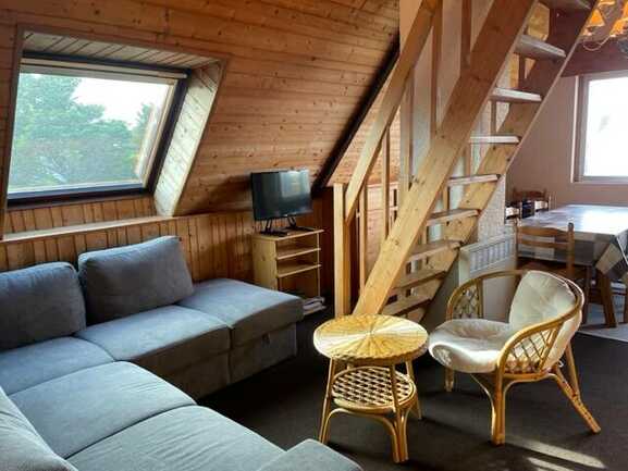 Apartment with separate entrance. Chalet-style duplex. One large room with open-plan kitchen.
