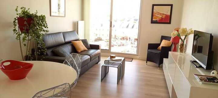 Bright, fully-renovated 3-person apartment with unobstructed view of old Port-Haliguen and 2 balconies (east and west).