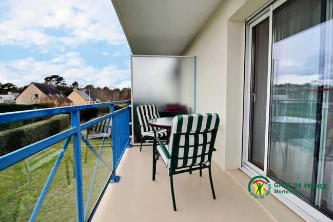 The living room faces south-east and gives access to a 6m2 balcony with garden furniture, parasol and electric barbecue.