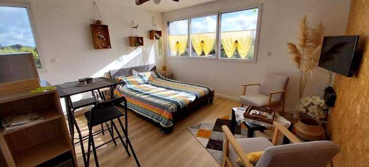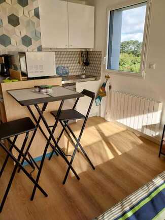 You will find all the comfort of a small apartment in a wooden building, completed in 2022, studio 24 m², 1st floor, individual access, for 2 people: