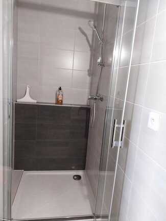Bathroom: shower, washbasin, wall-hung WC, hairdryer. Clotheslines are available in the garden (e.g. for beach towels).