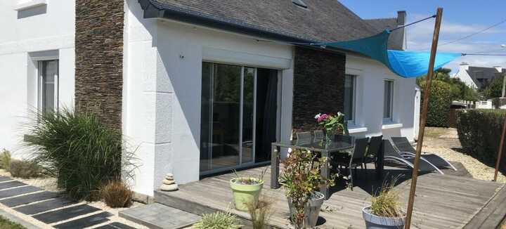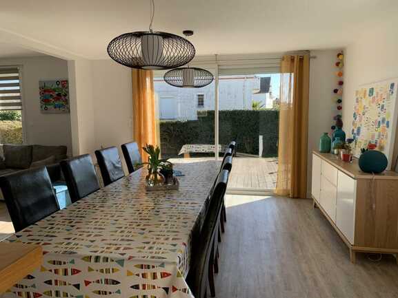 House sleeps 8 near center and Grande plage Pleasant, tastefully renovated detached house with all comforts and fully enclosed flower garden, ideally located near shops and 800 m from the Grande Plage. Everything can be done on foot or by bike. Ground floor: entrance, living room, fitted kitchen, separate toilet, 1 bathroom and 2 bedrooms.1st floor: 2 bedrooms, 1 mezzanine, 1 separate toilet, 1 shower room.South-facing terrace with garden furniture and parasol. 2 sun loungers, barbecue.