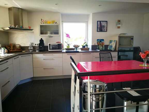Recent 90m² house, private entrance and parking on enclosed garden, flowers, not overlooked.