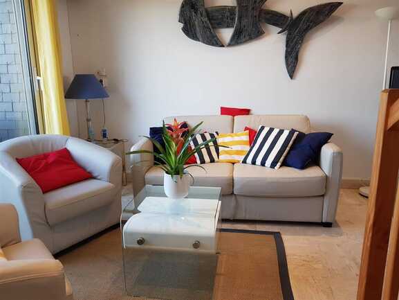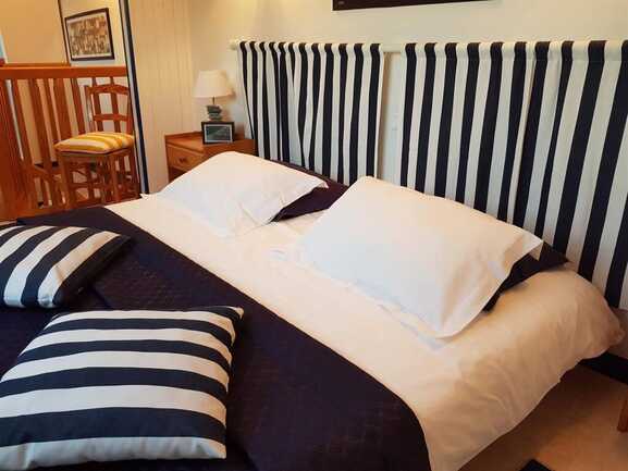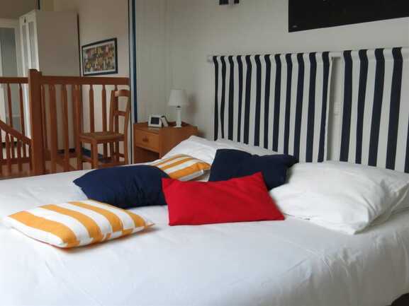Terrace with table and chairs. Mezzanine bedroom with king-size bed 180 (or 2x90).