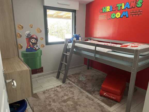- One bedroom with a 90 x 190 high bed (more suitable for a child)