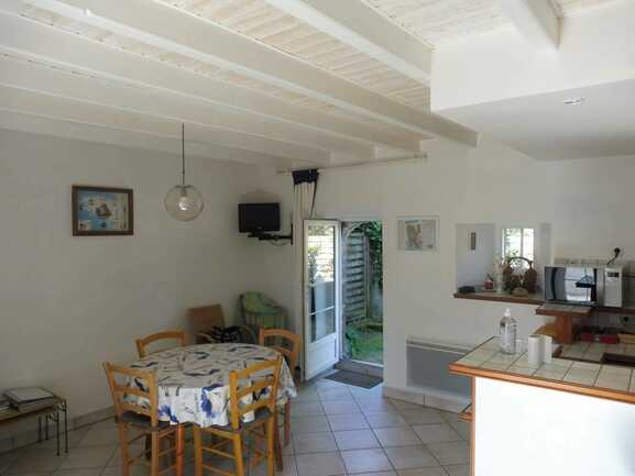 Living room with open-plan kitchen. Bathroom with bath, washbasin and WC. Washing machine, dishwasher and Wifi. Baby equipment provided free of charge. Sea view from front door, Gulf view from parents' bedroom. Enclosed garden. Pets on request but no cats. Secure parking.