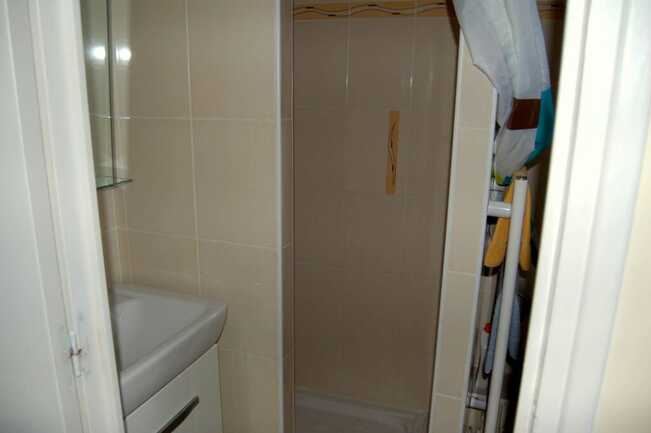 - Bedroom 1: double bed, cupboard with shelves and closet