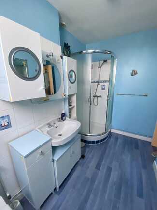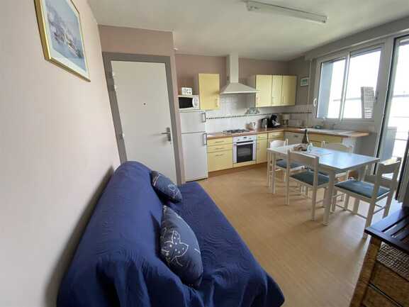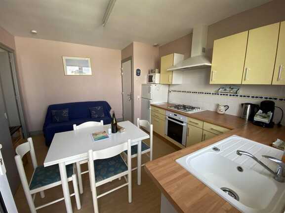 The apartment has a fully-equipped kitchen (dishwasher and oven) and a bedroom (1 bed 140 and 1 bed 80) with bathroom.