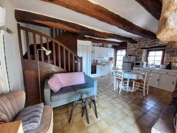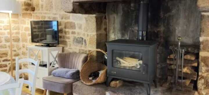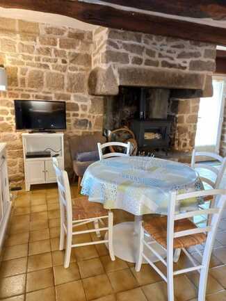 At the end of a longère, adjoining Ty Jean-Michel, this south-facing gîte is more traditional, with its imposing granite fireplace, exposed stone walls and beams.