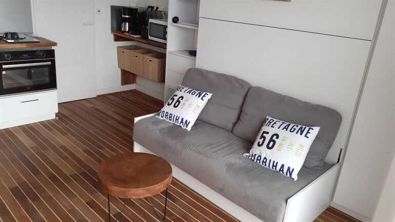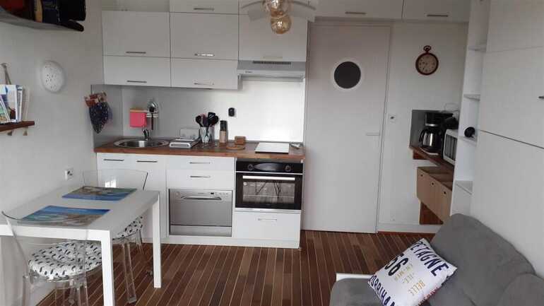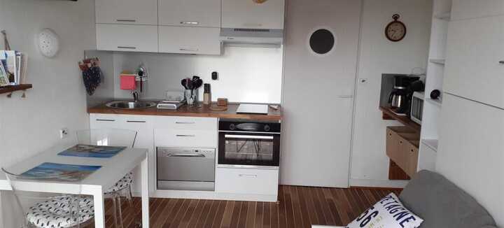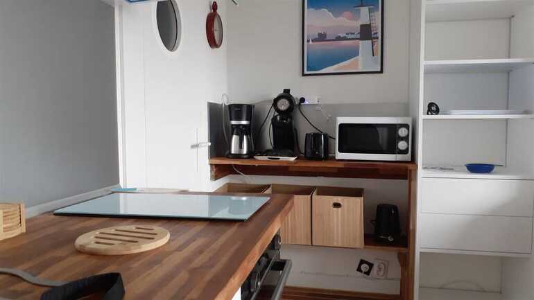 Welcome aboard our non-smoking studio for 2 people, on the 1st floor, in a seaside decor, with wooden boat deck flooring. Comprising an entrance with cupboard and closet, separate toilet and shower room with washing machine - fridge-freezer.