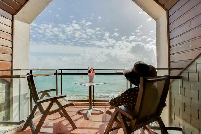 Located in the town center, on the edge of the main beach, facing south, the ALBATROS offers breathtaking views of the ocean, beach, islands and fishing port. Each of the 20 sea-facing rooms has its own sunny terrace overlooking the sea. Breakfast is available in your room or as a buffet in the panoramic room overlooking the ocean. Option to dine at Le Corsaire restaurant. Private parking. Free Wifi access.